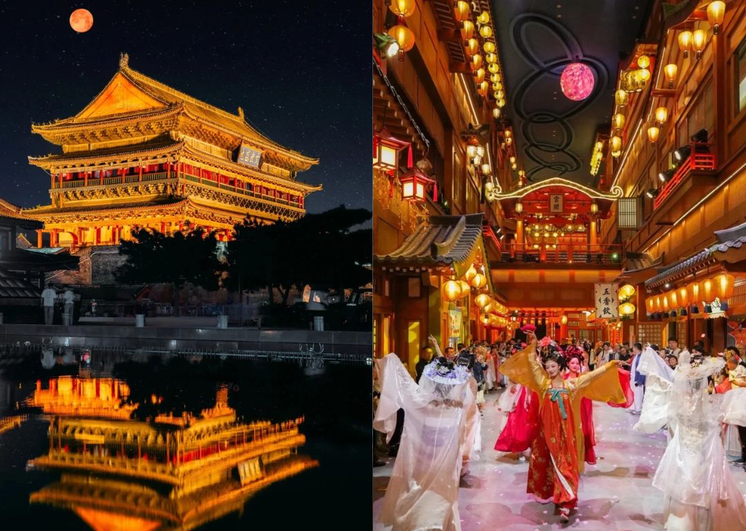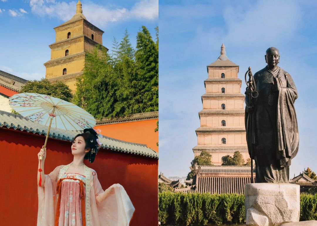 作為唐代的文化地標,大雁塔廣場融合了歷史與現代感,尤其是晚上的音樂噴泉秀,讓人流連忘返。